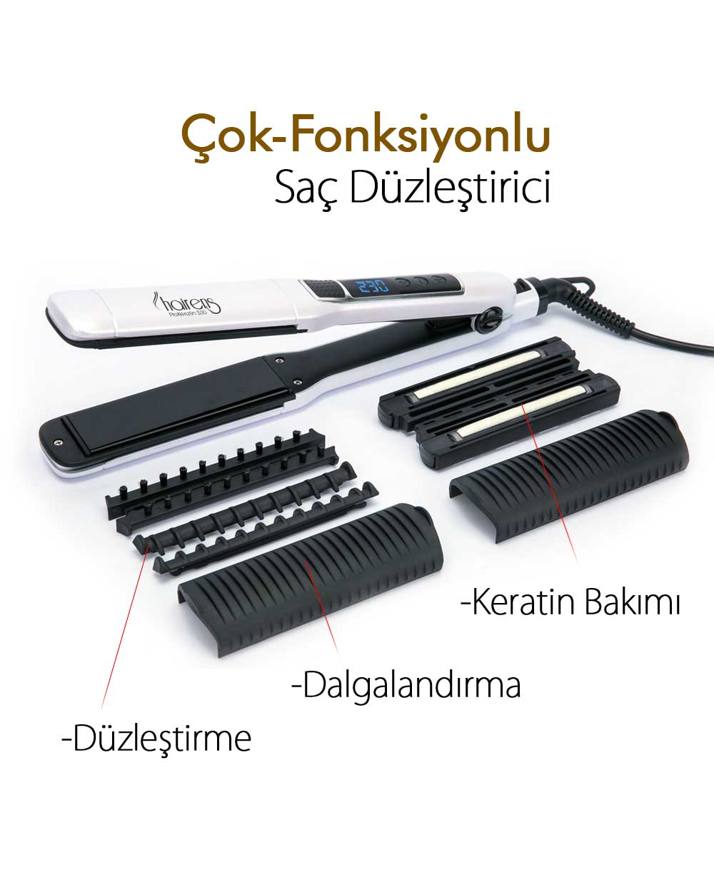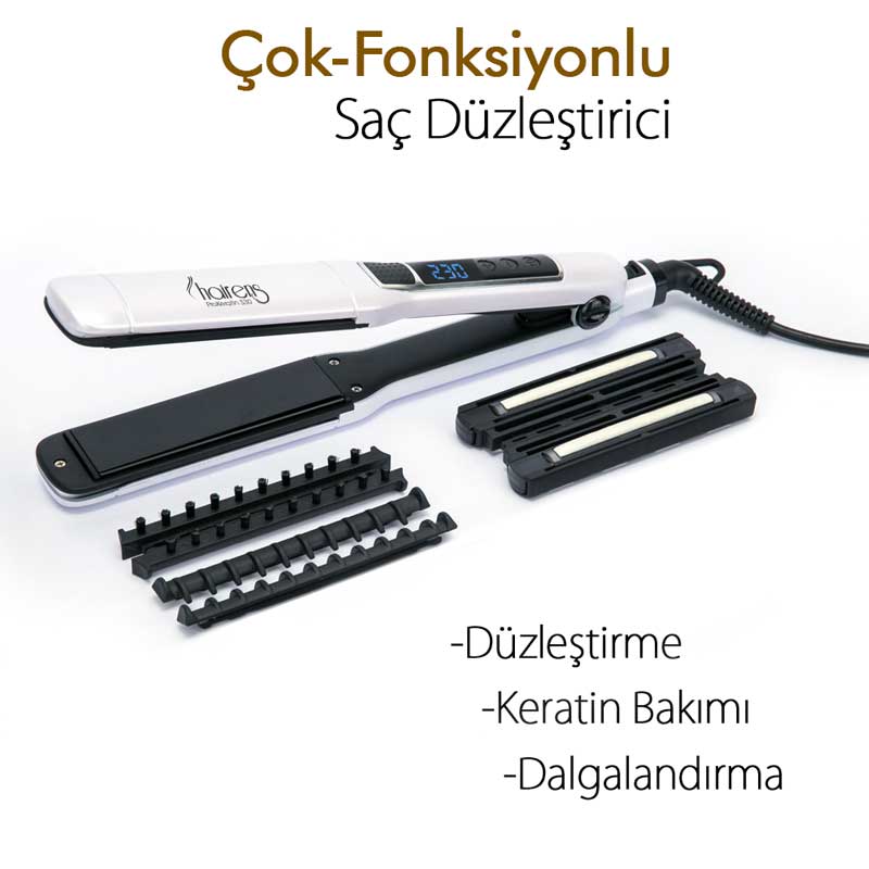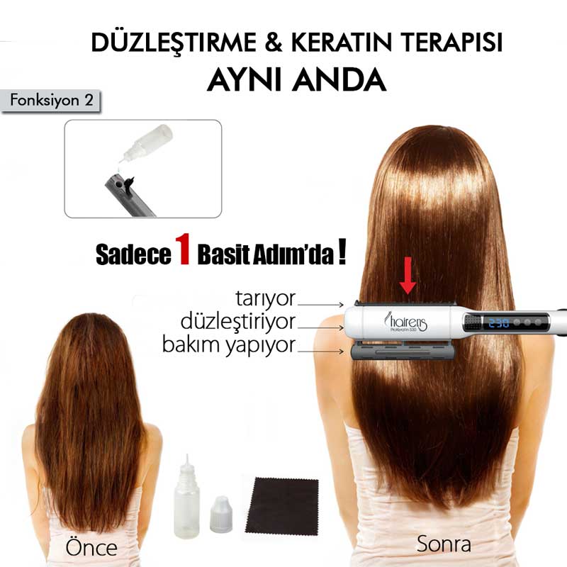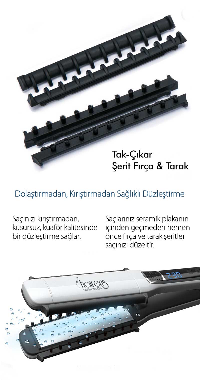 Hairens® ProKeratin S30 saçınız için yeni nesil çözüm ortağınız. 3 farklı fonksiyonu sayesinde saç düzleştirmede yeni nesil bir saç düzleştiricidir. Sizlerin ihtiyaçlarınızdan hareketle üretilen ProKeratin S30 saçınızı düzleştirmede kullanabileceğiniz en performanslı ürün olması amacıyla geliştirilip, dizayn edilmiştir. ProKeratin S30 'un tak-çıkar aparatları saçınızın istediğiniz düzleştirme performansını yakalamasını sağlar. Takılıp çıkarılması oldukça pratik olan bu aparatlar saçınızın daha düz olmasını sağlerken aynı zamanda saçınıza bakım yapmanıza yardımcı olur.