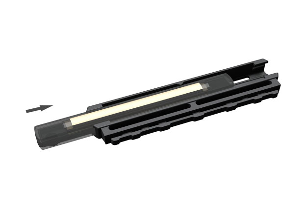 • Bakım tankı, tank ve tutucu olmak üzere 2 parçadan oluşur. Tarak ve fırçada olduğu gibi aynı oluk içinden kaydırılarak takılmalıdır.