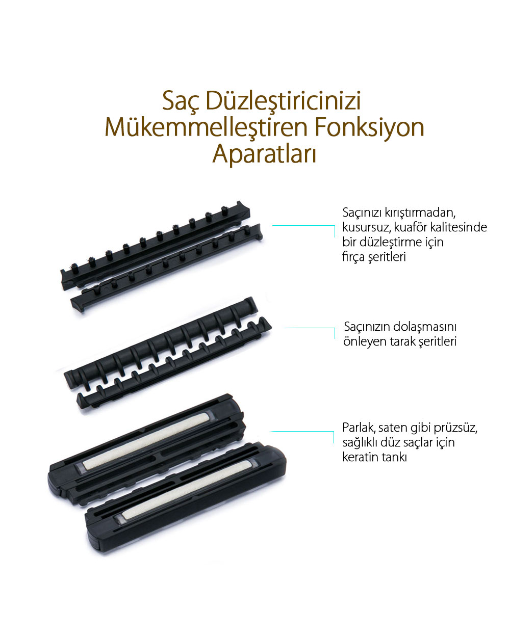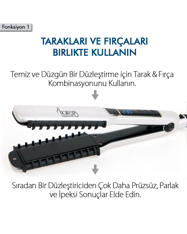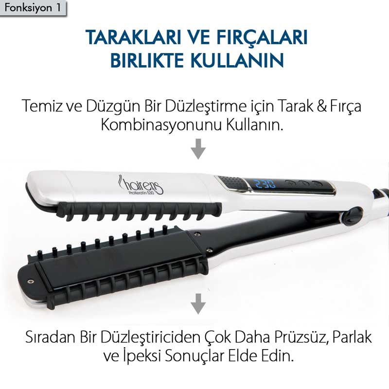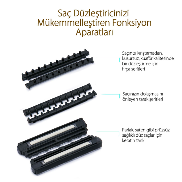 - Tak-Çıkar taraklar: Saçları dolaştırmadan, kırıştırmadan daha düzgün ve temiz bir düzleştirme işlemi için tarak aparatları kullanın.
