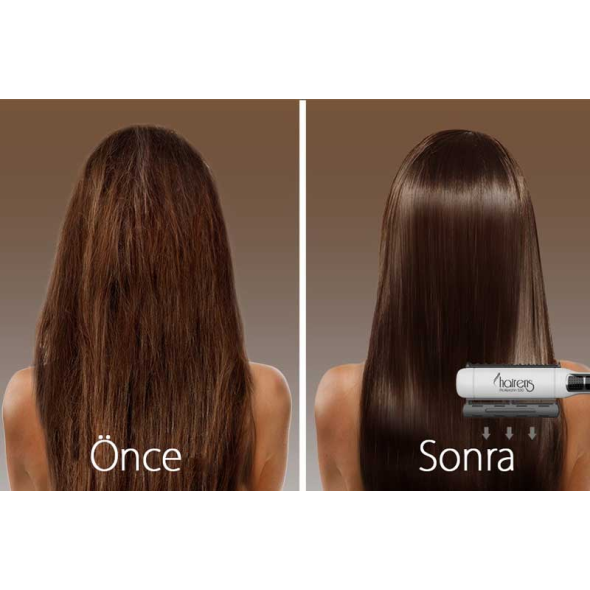 Keratinli seramik kaplama teknolojisi sayesinde saçları kırmadan, yıpratmadan pürüzsüz, kaygan ve muhteşem parlak sonuç.