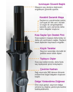 NOT: Geniş ve doğal su dalgaları elde edebilmek için ince değil, kalın tutamlarla uygulama yapmanız önerilir. Saçlarınızın tamamını 4-5 parçaya bölerek kırık fön aparatının içine yerleştirin ve kurutmaya başlayın. Daha sonra saçlarınız ellerinizle karıştırarak dalgaları doğallaştırmayı unutmayınız. Başarılı dalgalar elde etmek için uygun ürünü kullanmanız tavsiye edilir. Orta boy saçlar için (Omuz hizasına kadar) orta boy, uzun saçlar için ise (Omuzdan aşağıda olan saçlar) Uzun boy satın alın.